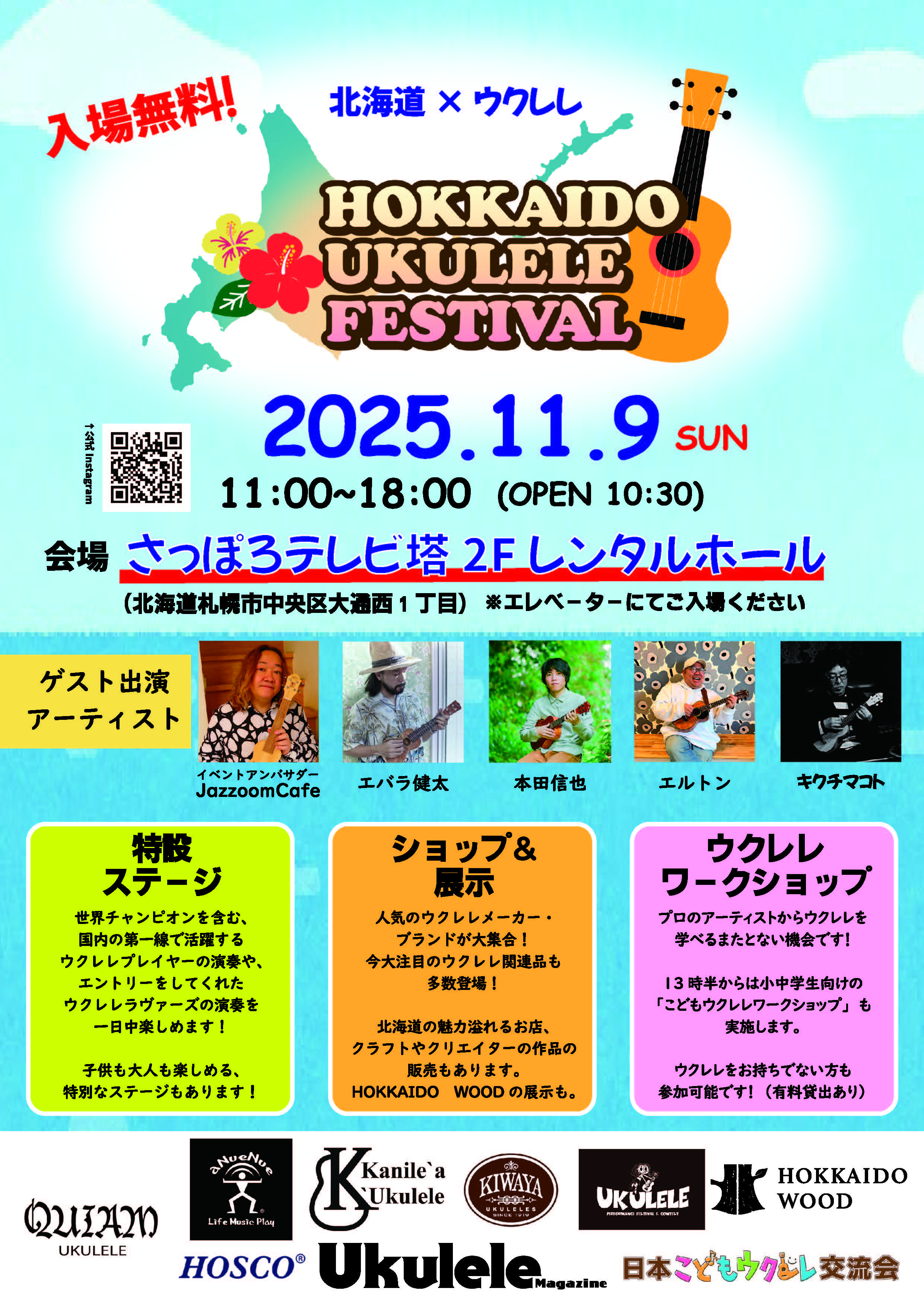 島村楽器のウクレレフェアに出展!第一弾は4/5(土)4/6(日)札幌ステラプレイス店です